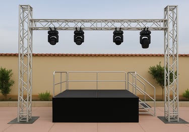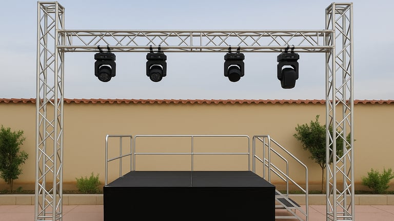 Sturdy aluminum structures for mounting lights, screens, and stage equipment, ensuring safe and professional event setups.