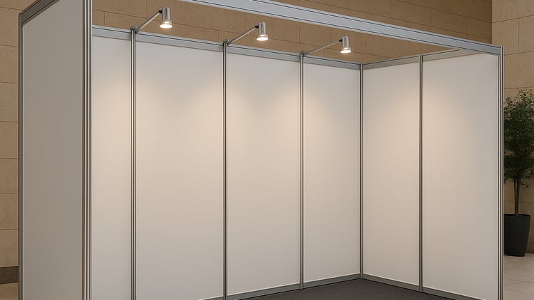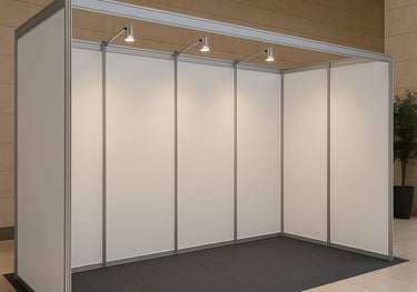 Modular and customizable structures designed to create professional exhibition stands, branded walls, and display areas for events and trade shows.