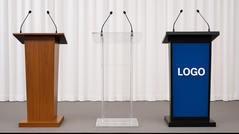 Sleek and professional lecterns designed for speakers, conferences, and ceremonies, available in modern and classic styles.